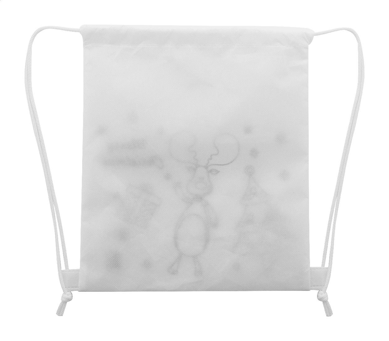 Vánoční vak na vybarvování se stahovací šňůrkou z netkané RPET tkaniny s 5 voskovkami.