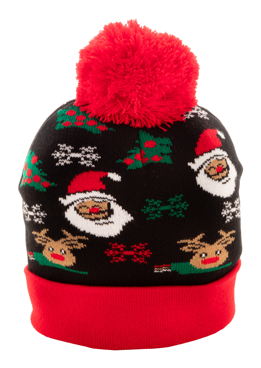 Pletená vánoční zimní čepice z akrylu s bambulí.