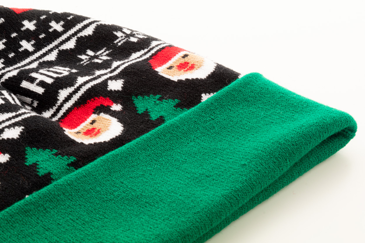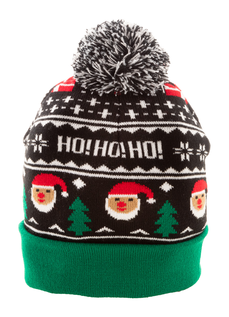 Pletená vánoční zimní čepice z akrylu s bambulí.