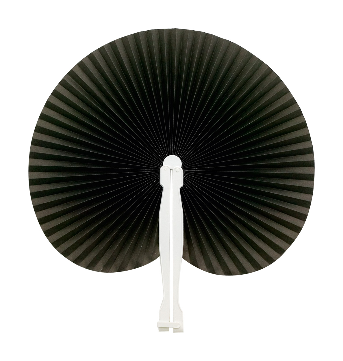 Papírový vějíř s plastovým držadlem.