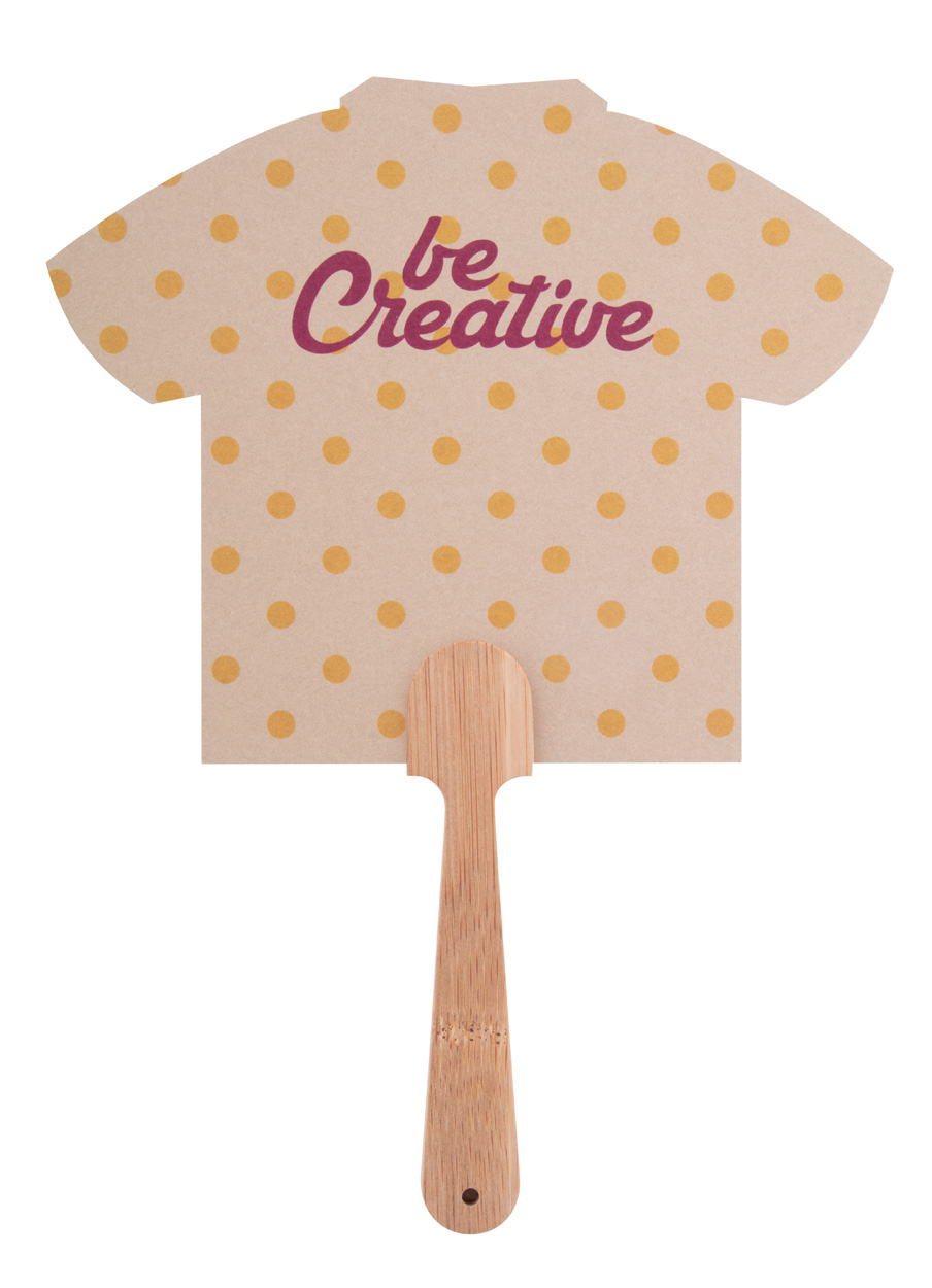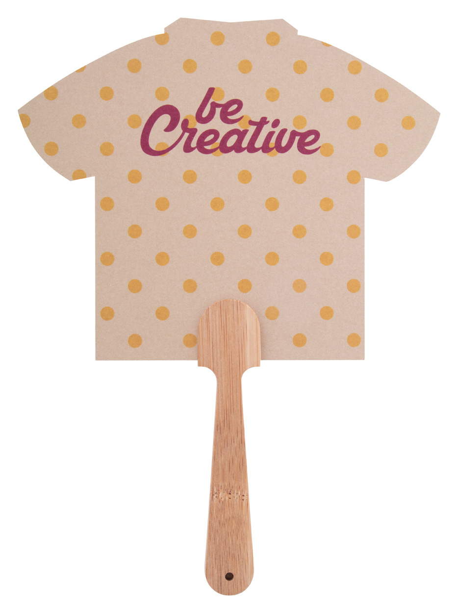 Vějíř vyrobený na zakázku s bambusovou rukojetí a kraftovým papírem. Cena zahrnuje digitální tisk na obou stranách, nezahrnuje tiskovou přípravu. Min. mn.: 100 ks.