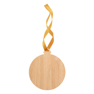 Vánoční ozdoba z bambusové překližky se zlatou stuhou. Dodáváno s oddělenou stuhou.