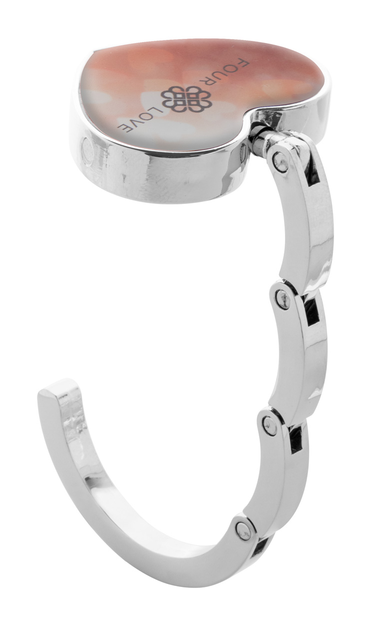 Kovový věšáček na tašku ve tvaru srdce s magnetickým zavíráním. V černé dárkové krabičce.