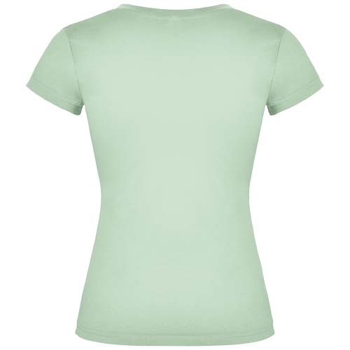 Dámské tričko s krátkým rukávem a výstřihem do V s úpravou 1x1 žebrování. Úzký střih s bočními švy. Odnímatelný štítek. Modelka měří 174 cm a má na sobě velikost S.