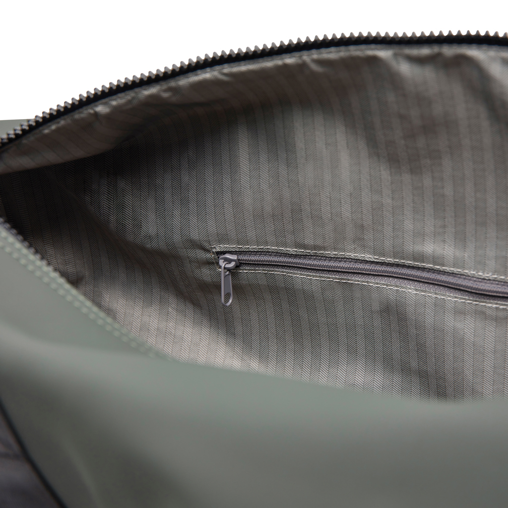 Cestovní víkendová taška vyrobená z částečně recyklovaného polyesteru s certifikací RCS a elegantním PU povrchem. Navržena tak, aby se do ní vešlo vše, co potřebujete na 1-2 noci. Tašku jednoduše upevníte na kufr pomocí chytré kapsy na zip 2 v 1. Je vybavena jak pohodlnými popruhy pro nošení v ruce, tak odnímatelným nastavitelným ramenním popruhem. Uvnitř menší kapsa na zip pro vaše nezbytnosti. Certifikace RCS zaručuje, že celý dodavatelský řetězec recyklovaných materiálů je certifikován. Celkový recyklovaný obsah vychází z celkové hmotnosti výrobku. Tento výrobek obsahuje 20 % recyklovaného polyesteru s certifikací RCS.