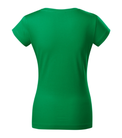 lehce vypasovaný střih s bočními švy, hlubší kulatý výstřih, úzký lem průkrčníku z vrchového materiálu s 5 % elastanu, vnitřní část průkrčníku začištěna páskou z vrchového materiálu, zpevnění ramenních švů páskou, rukávy kratší délky, silikonová úprava