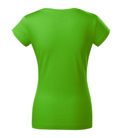 lehce vypasovaný střih s bočními švy, hlubší kulatý výstřih, úzký lem průkrčníku z vrchového materiálu s 5 % elastanu, vnitřní část průkrčníku začištěna páskou z vrchového materiálu, zpevnění ramenních švů páskou, rukávy kratší délky, silikonová úprava