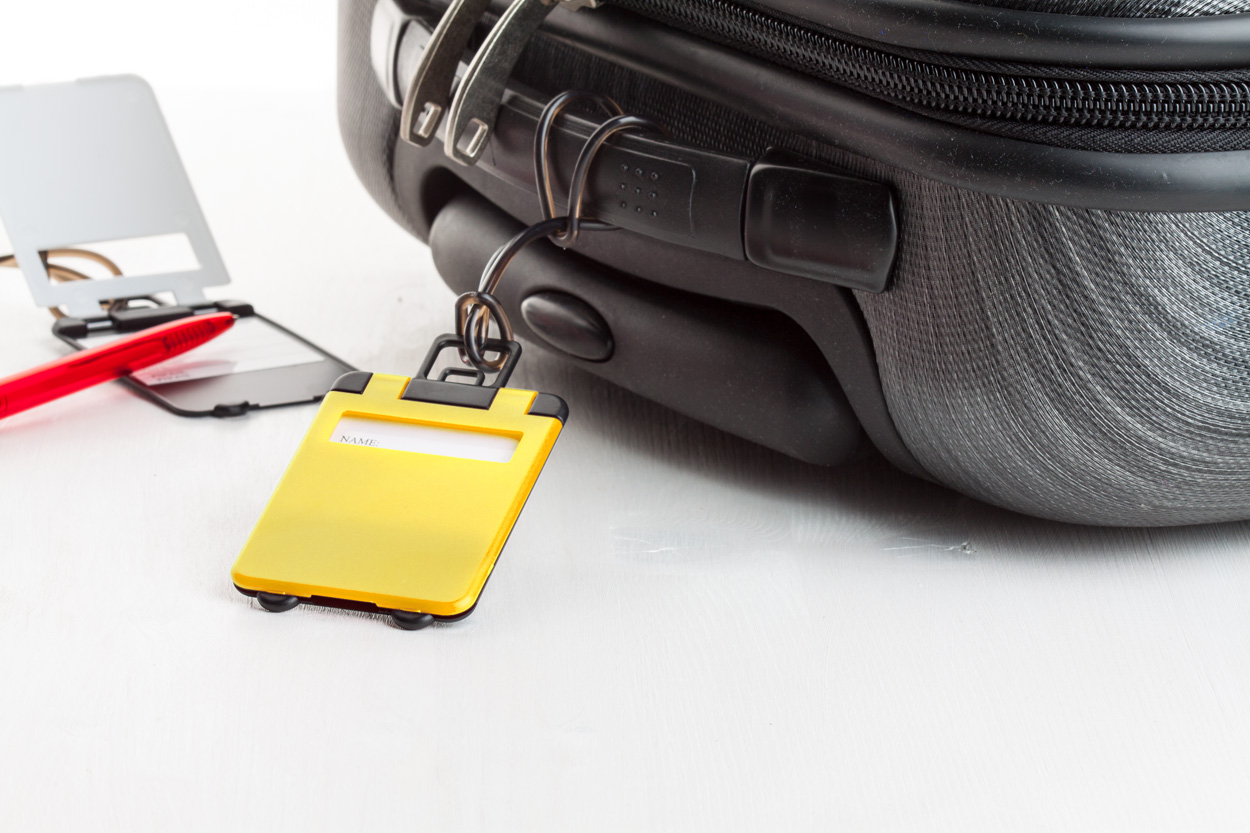 Plastová visačka na zavazadla.