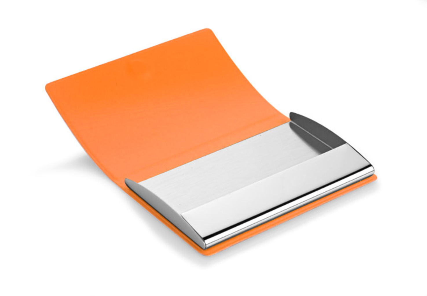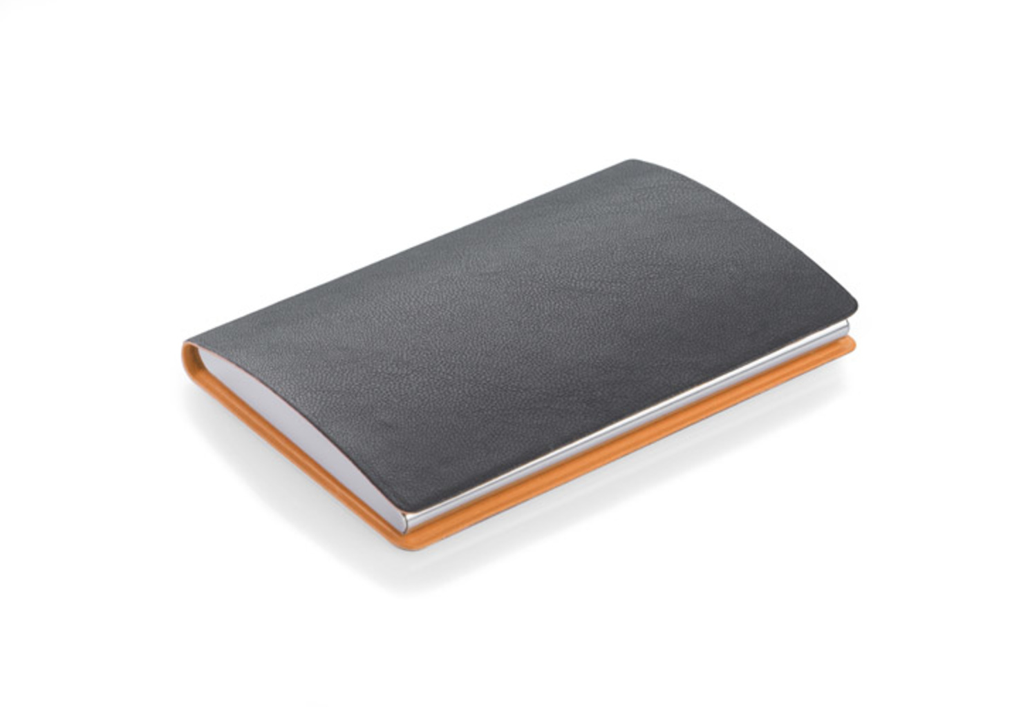 Klasická černá vizitka „zlomená“ je velmi zajímavou alternativou k barevnému značení. Barva gravíru je podobná vnitřní strany vizitkáře. Držák na vizitky je vyroben z eko-kůže a část s prostorem pro vizitky je vyrobena z kovu. Přicházím ve 4 barvách.