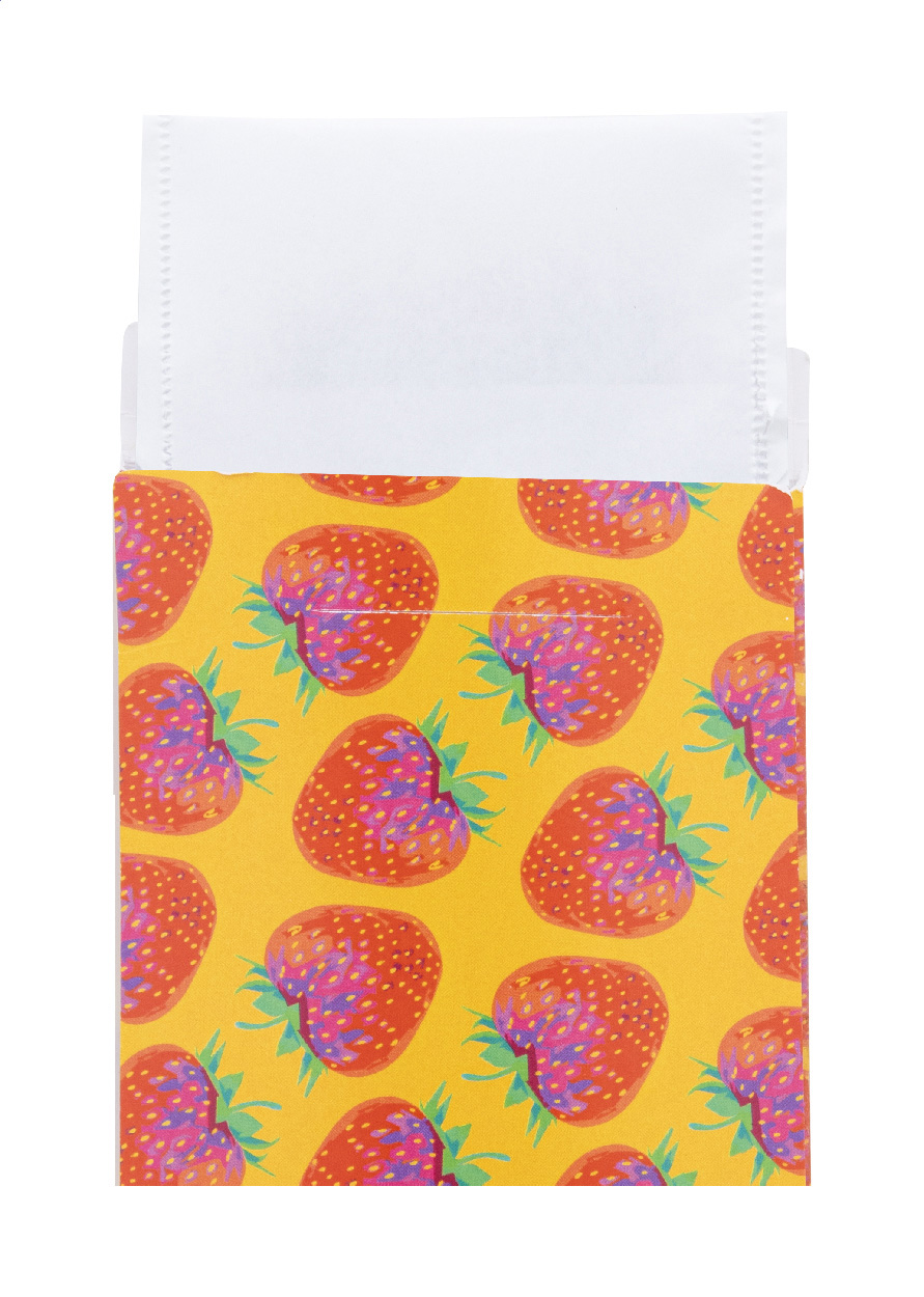 Samostatně balený čajový sáček v papírovém obalu s celobarevným potiskem vyrobeným na zakázku, cena nezahrnuje tiskovou přípravu. Obsahuje 1,2 g (1 sáček) čaje. Min. mn.: 100 ks.