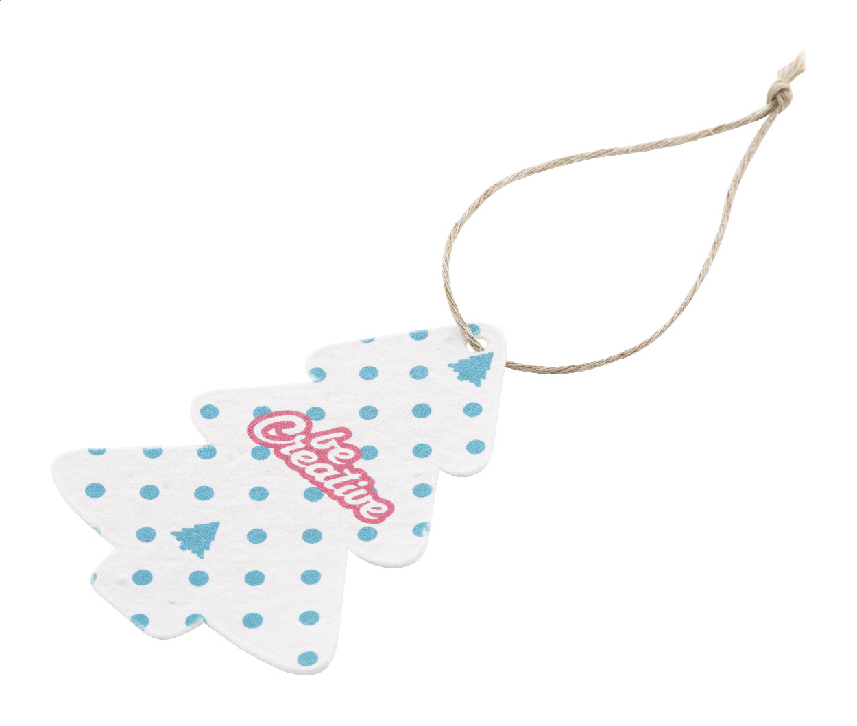 Vánoční ozdoba na stromeček s barevným potiskem na zakázku z papíru se semínky a lněným provázkem. Cena zahrnuje digitální tisk na jedné straně. S různými semínky divokých květin. Min. mn.: 100 ks.