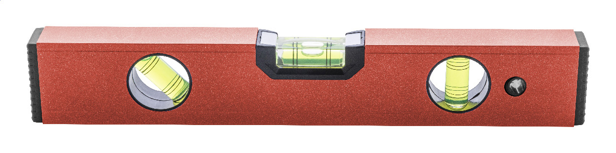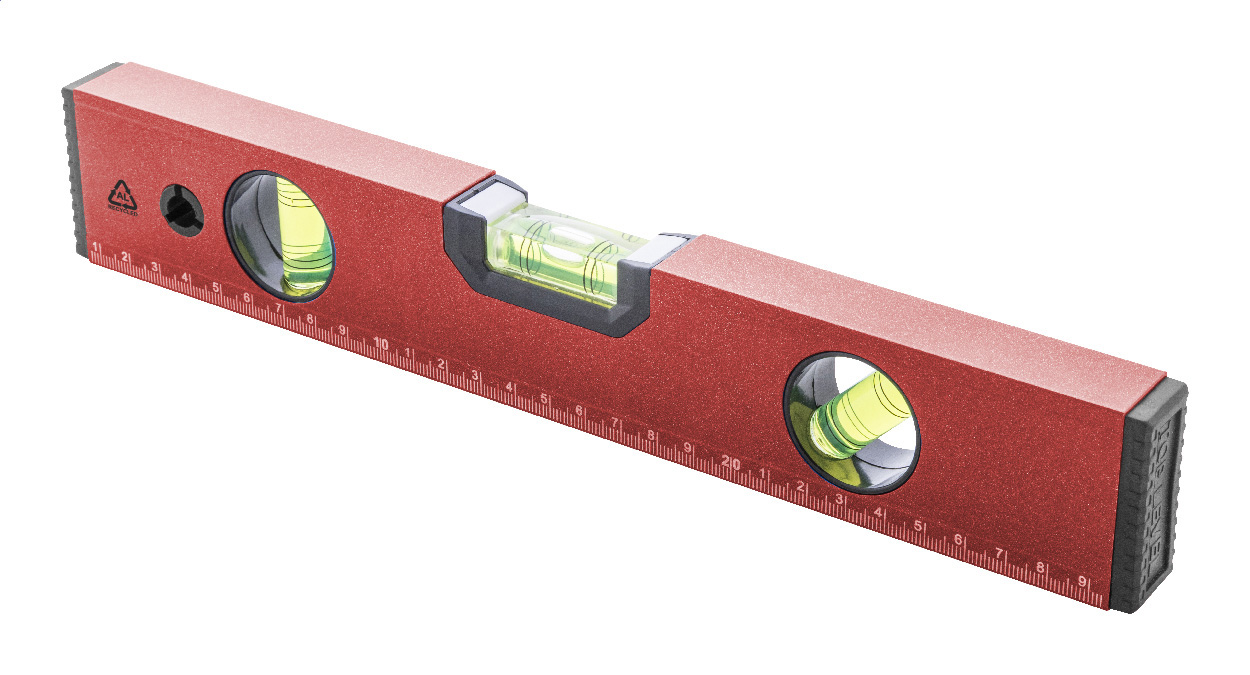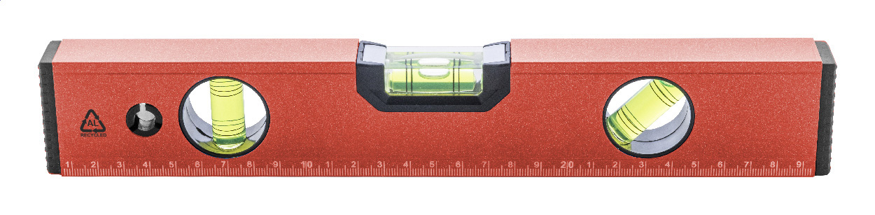 Magnetická vodováha z recyklovaného hliníku se třemi vodováhami (horizontální, vertikální a 45°) a 30cm pravítkem.