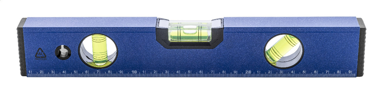Magnetická vodováha z recyklovaného hliníku se třemi vodováhami (horizontální, vertikální a 45°) a 30cm pravítkem.