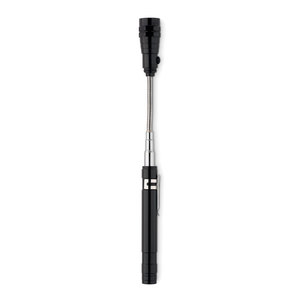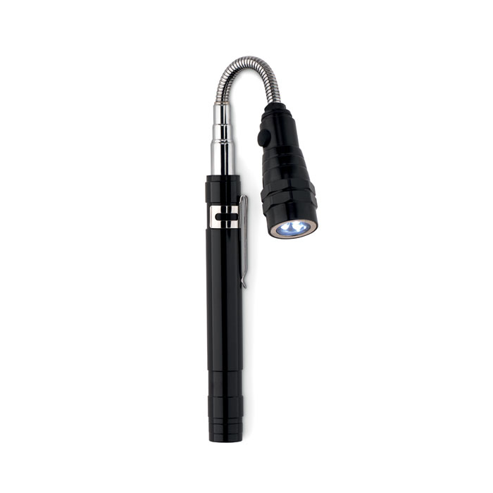 Výsuvná hliníková svítilna s 3 LED světly, magnetem a klipem. Přiloženy 4 baterie LR44. Maximální délka 57 cm.