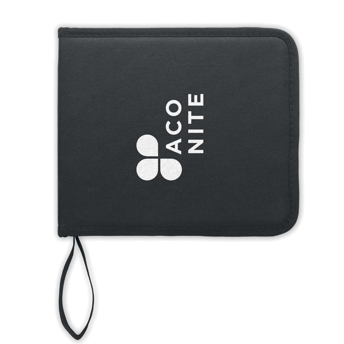 Profesionální 40dílná sada na kreslení a skicování. Obsahuje: 14 barevných tužek, 12 barevných per, 1 smirkový papír, několik grafitových tužek, 1 bezdřevou grafitovou tužku, 1 nástavec na tužky, 1 ořezávátko, 1 gumu, 1 štětec a 1 nůž. Dodáváno v pevném pouzdře na zip z polyesteru 450D RPET.