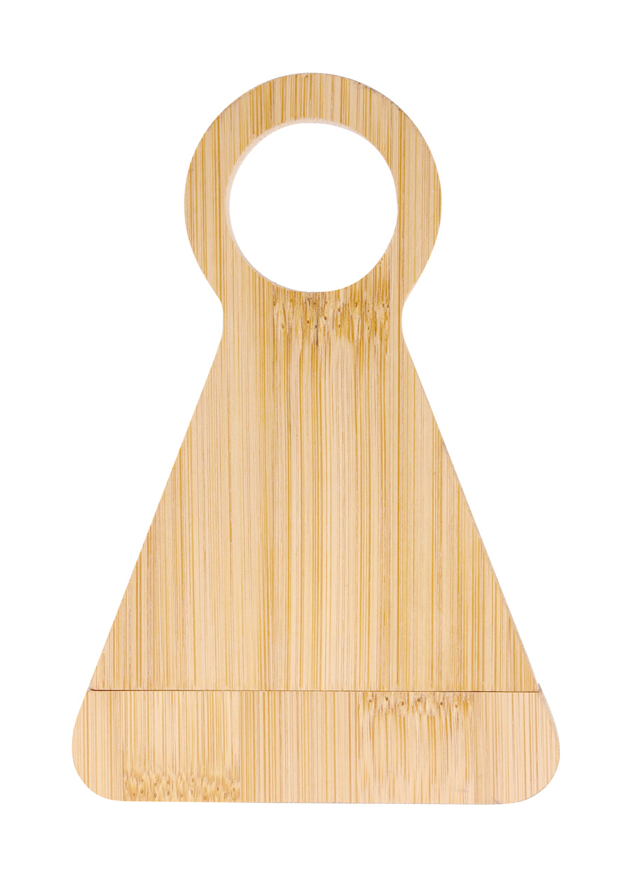 Bambusový držák na láhev s nerezovou vývrtkou.