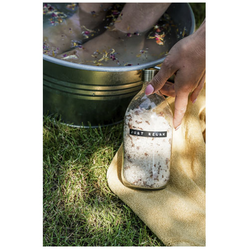 Je čas někoho rozmazlit a dopřát mu domácí spa. Sůl pochází z Mrtvého moře a má hydratační a relaxační účinek. Po koupeli s růžovou koupelovou solí Wellmark bude pokožka čistá, zdravá a pružná. Nemáte doma vanu? Koupelovou sůl můžete také použít k osvěžení a uvolnění unavených nohou. Čirá láhev (500 ml) s mosazným uzávěrem vyzařuje luxus a přispívá k dokonalé lázeňské atmosféře. Vyrobeno v Holandsku.