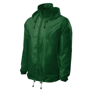 lehký větruodolný materiál, celopropínací spirálový zip, skrytá kapuce v límci, kapuce a dolní lem na stažení elastickou šňůrkou, lištové kapsy, samostatná kapsička na zip pro skladné uložení