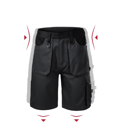 pruženka v boční části pasového límce, 7 multifunkčních kapes, zdvojený materiál v oblasti sedu, plastové "D" poutko a karabina na klíče a ID karty, poutko na kladivo, dvojité prošití pro vyšší odolnost, retroreflexní prvky, původní střihy velikostí S, M, L, XL, 2XL najdete pod komoditou WX5 v sekci OUTLET