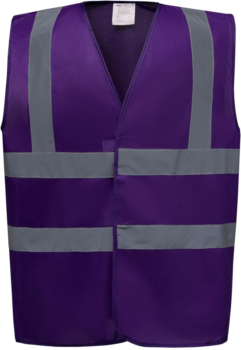Kulatá pletenina, suchý zip, barvy Hi-Vis certifikované podle normy EN ISO 20471 třídy 2, black, lime, navy, purple, paramedic green, red, raspberry, royal blue/hi-vis yellow EN ISO 20471:2013 certifikát pro třídu 1, ostatní barvy umožňují zvýšenou viditelnost, garantované reflexní vlastnosti podle EN - normy pro 25 praní, 1 reflexní pruh přes každé rameno, dva reflexní pruhy široké 5 cm kolem těla, pratelné na 40°