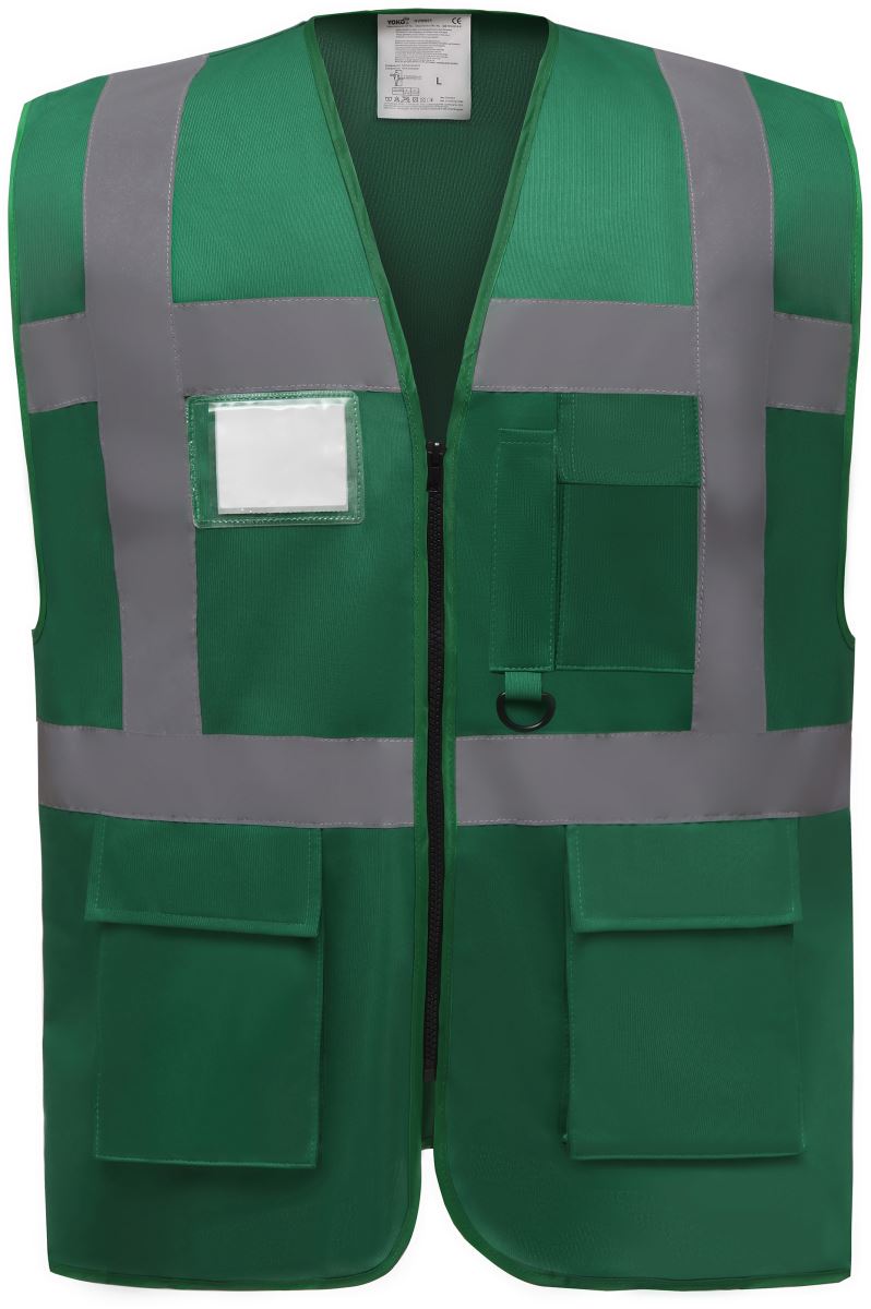 Plný zip, 2 boční kapsy s klopami, vlevo našitá náprsní kapsa, integrovaný držák na pero, kroužek k připevnění karty, klíčů, atd., barvy Hi-Vis certifikované podle normy EN ISO 20471 třídy 2, barvy s hi-vis yellow nebo orange a druhou barvou certifikované podle normy EN ISO 20471:2013 třídy 2, ostatní barvy umožňují zvýšenou viditelnost, garantované reflexní vlastnosti podle EN - normy pro 25 praní, velký prostor pro zušlechtění na zádech, 1 reflexní pruh přes každé rameno, dva reflexní pruhy široké 5 cm kolem těla, pratelné na 40°