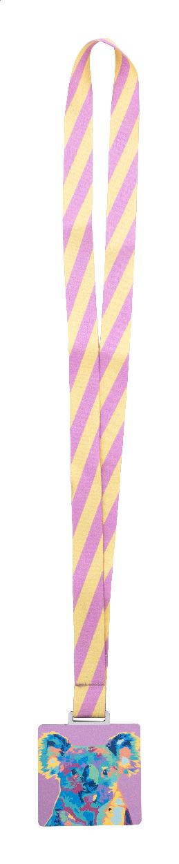 Medaile z kartáčovaného hliníkového kompozitu čtvercového tvaru s barevnou grafikou na zakázku. Lanyard z RPET s sublimačním potiskem. Cena zahrnuje sublimační a UV LED tisk, nezahrnuje tiskové přípravy. Min. mn.: 100 ks.