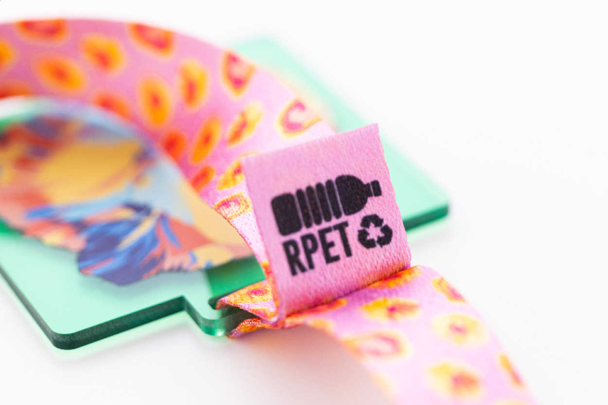 Čtvercová akrylová medaile na zakázku s plnobarevnou grafikou. Na sublimační potištěné RPET šňůrce. Cena zahrnuje sublimační a UV LED potisk, nezahrnuje tiskovou přípravu. Min. mn.: 100 ks.