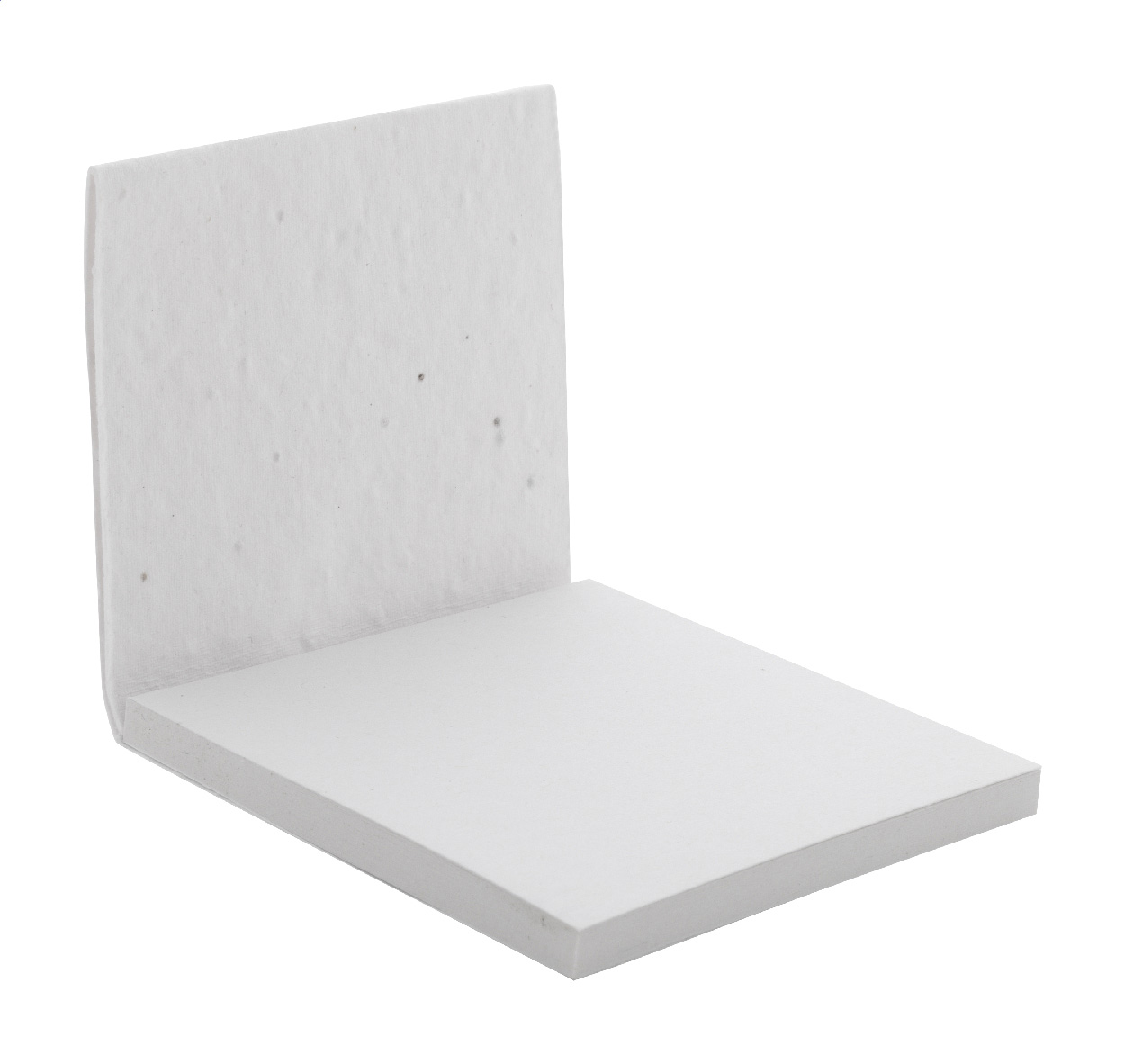 Zásobník na papírové poznámky na zakázku s vertikální hlavičkou. Obsahuje 50 listů recyklovaných papírových samolepících papírků (75×75 mm). Cena zahrnuje plnobarevný potisk držáku, nezahrnuje tiskovou přípravu. Min. mn.: 100 ks. S různými semínky divokých květin.