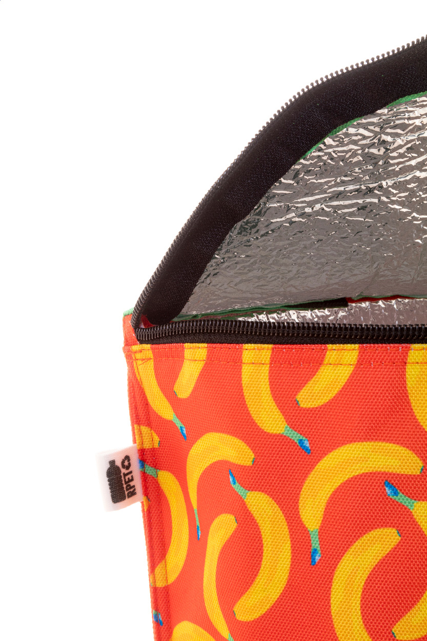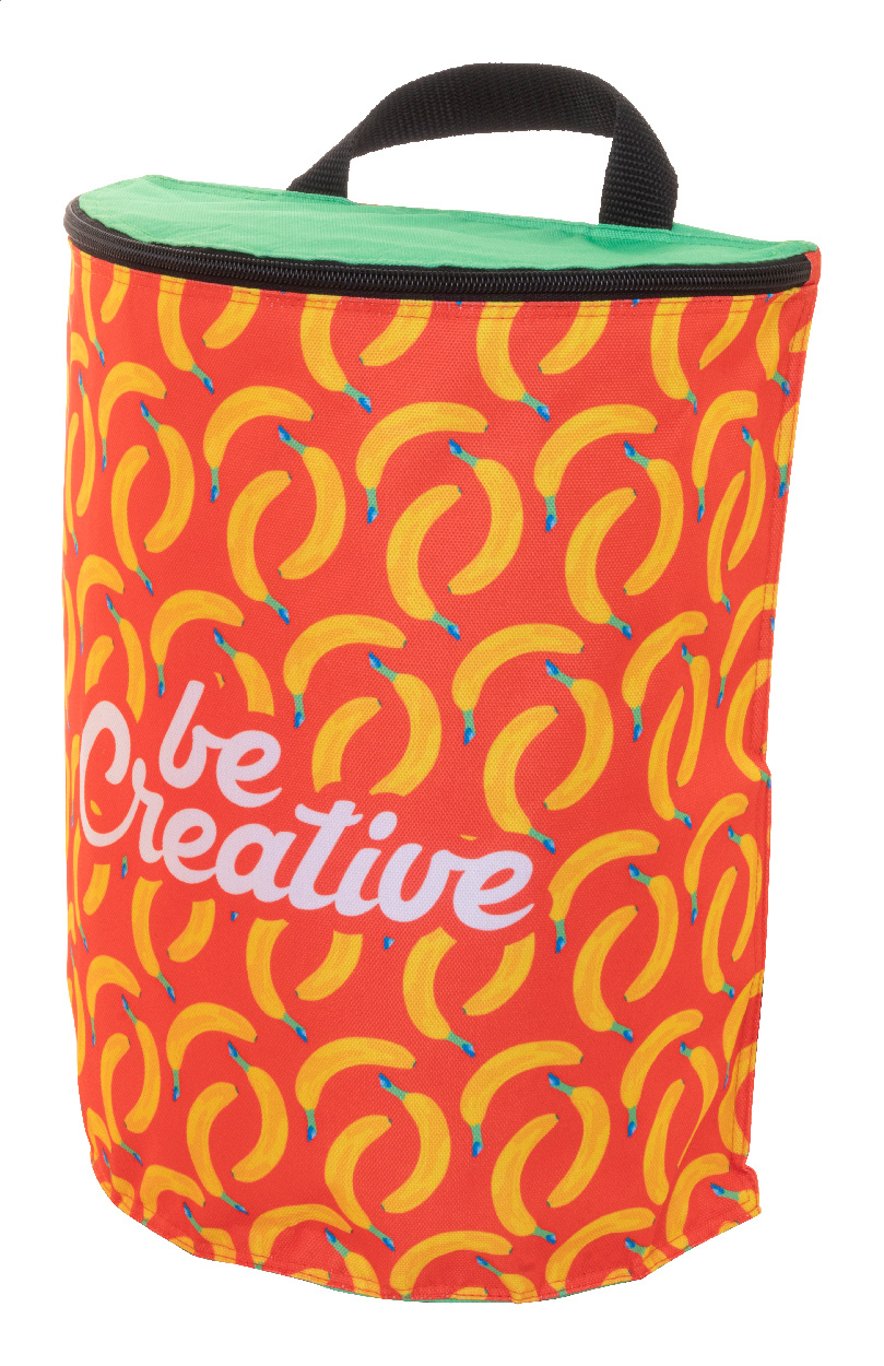 Chladicí batoh na zip vyrobený na zakázku z 600D RPET polyesteru s hliníkovou výplní a polstrovanými ramenními popruhy. S celoplošným sublimačním potiskem a výraznou RPET etiketou, cena nezahrnuje tiskovou přípravu. Min. mn.: 25 ks.