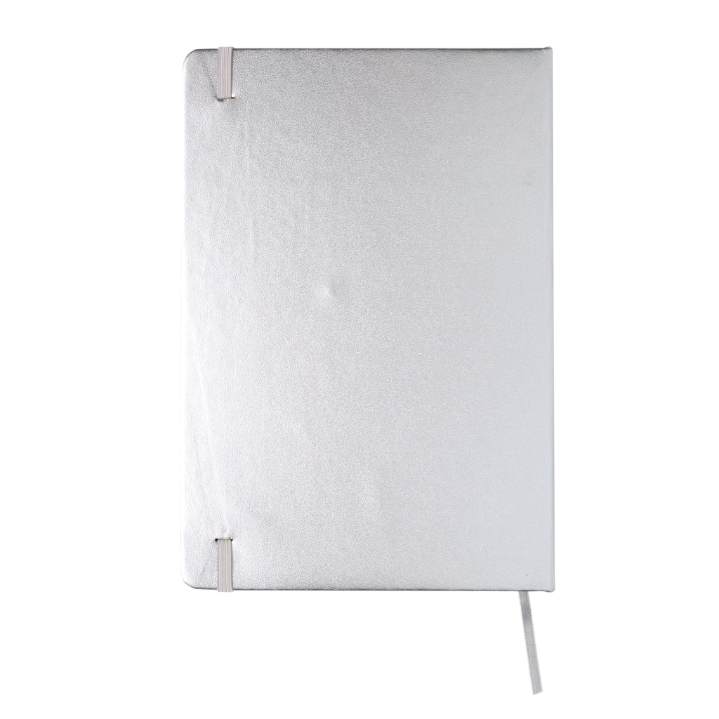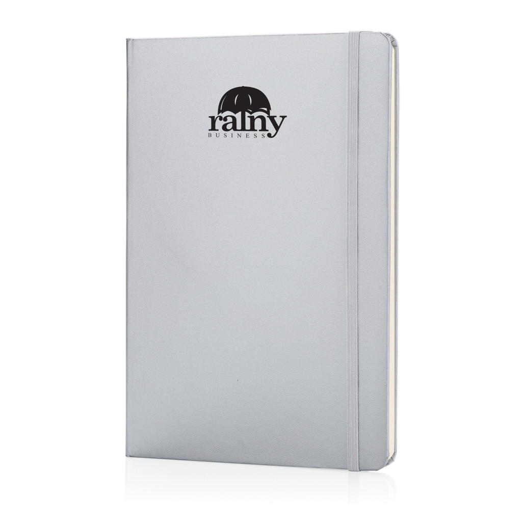 Linkovaný základní poznámkový blok A5 s pevnými deskami s elastickým zavíráním a záložkou ze stuhy. 144 listů papíru s gramáží 70 g/m2. Krémové stránky.