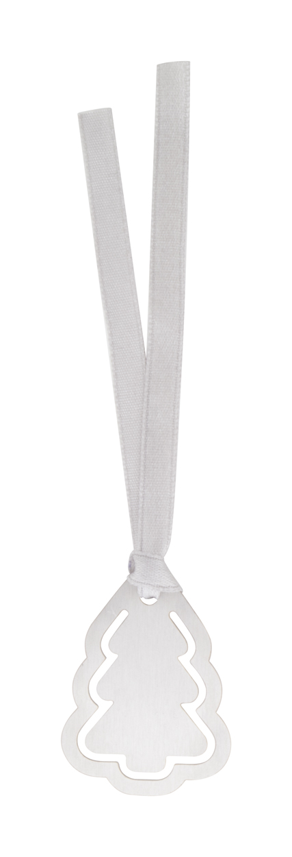 Záložka do knihy s vánočním motivem z nerez oceli se stříbrnou stužkou.