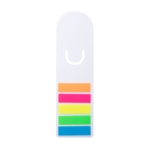 Papírová záložka na zakázku se značkovačem stránek. Obsahuje 100 plastových fóliových značkovačů stránek v 5 různých barvách (44×12 mm). Cena včetně plnobarevného potisku na přední straně, nezahrnuje tiskovou přípravu. Min. mn: 100 ks.