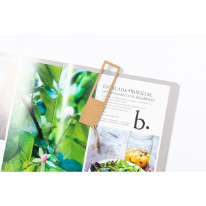 Záložka z recyklovaného papíru s lupou a provázkem.
