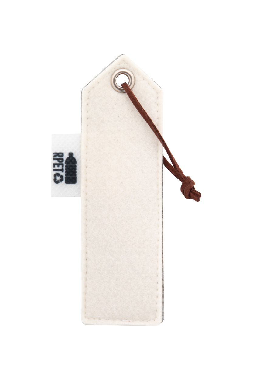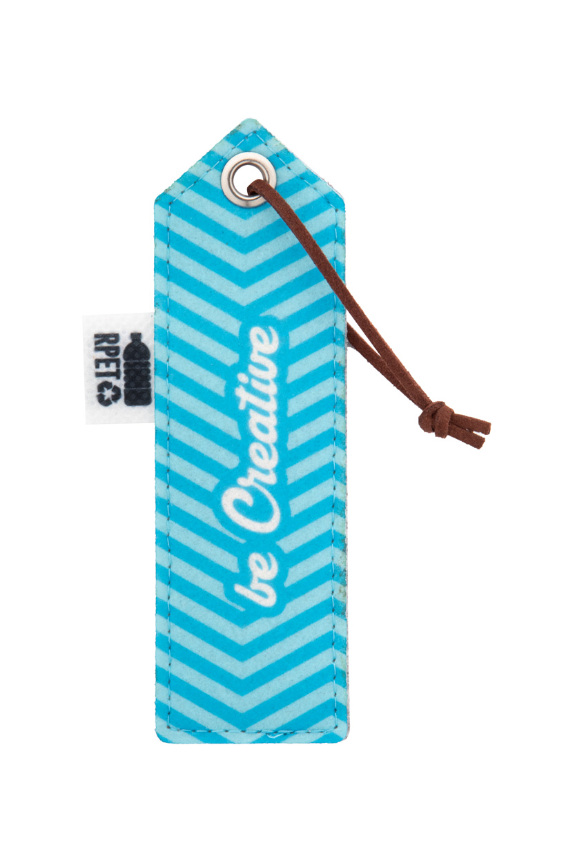 Na zakázku vyrobená záložka z RPET plsti s celobarevně potištěnou přední stranou a šňůrkou z PU kůže. S výrazným štítkem RPET. Cena včetně sublimačního tisku, nezahrnuje tiskovou přípravu. Min. mn.: 50 ks.