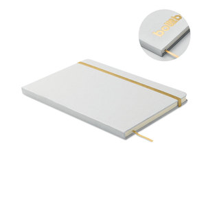 Zápisník A5 s tvrdými deskami vyrobenými ze 70 % z recyklovaných kartonů od mléka a 30 % z recyklovaného papíru. Po laserovém gravírování se odkryje základová barva. 160 stran linkovaného recyklovaného papíru (80 listů). Elastický pásek a záložka ladící s barvou základu.
