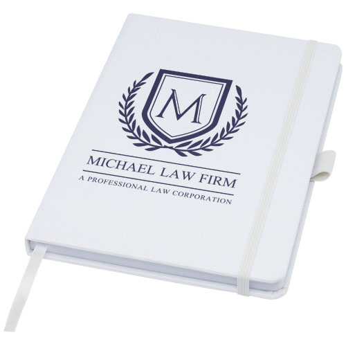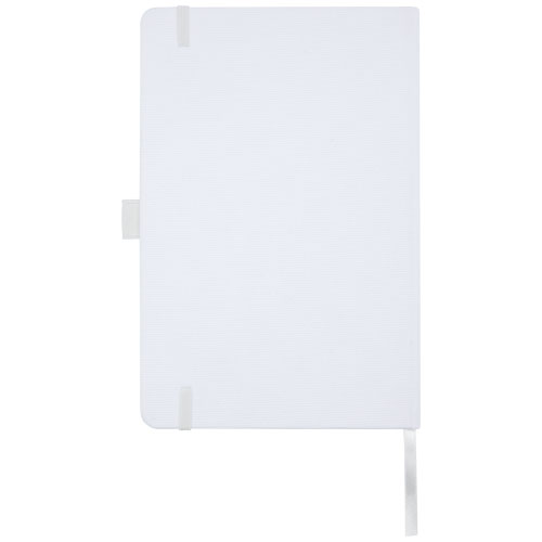 Zápisník formátu A5 s obálkou z látky s RPET. Obsahuje 80 listů linkovaného recyklovaného papíru 70 g/m2 se stuhovou záložkou a očkem na pero. Lze kombinovat s kuličkovým perem z RPET Honua 107757.