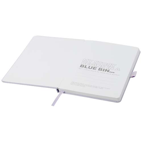 Zápisník formátu A5 s obálkou z látky s RPET. Obsahuje 80 listů linkovaného recyklovaného papíru 70 g/m2 se stuhovou záložkou a očkem na pero. Lze kombinovat s kuličkovým perem z RPET Honua 107757.