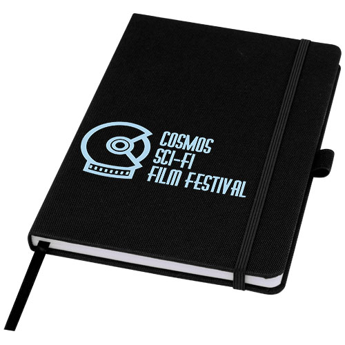 Zápisník formátu A5 s obálkou z látky s RPET. Obsahuje 80 listů linkovaného recyklovaného papíru 70 g/m2 se stuhovou záložkou a očkem na pero. Lze kombinovat s kuličkovým perem z RPET Honua 107757.