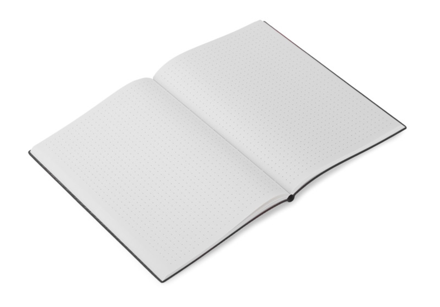 Poznámkový blok v měkkých deskách se zlatavým zdobením. Listy psacího bloku byly vyrobeny z kamenného papíru. Takový papír je výjimečně odolný proti rozedření a vlhku. Obsahuje 80 tečkovaných listů. Formát A5.