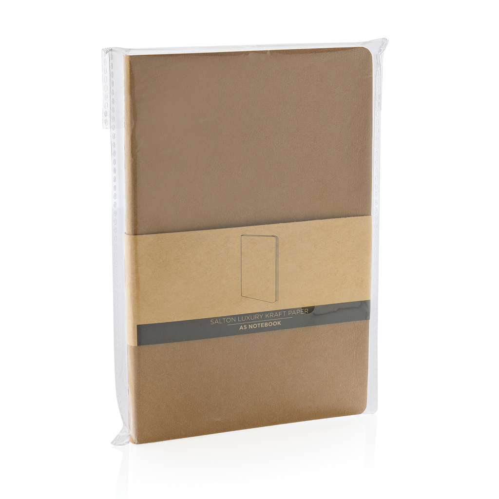 Stylový zápisník A5 vyrobený z luxusního kraftového papíru. Obsahuje 96 listů/192 stran 100 % recyklovaného bílého linkovaného papíru s gramáží 80g/m2.