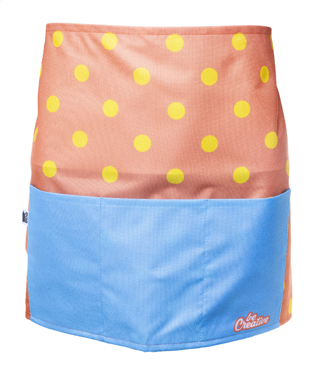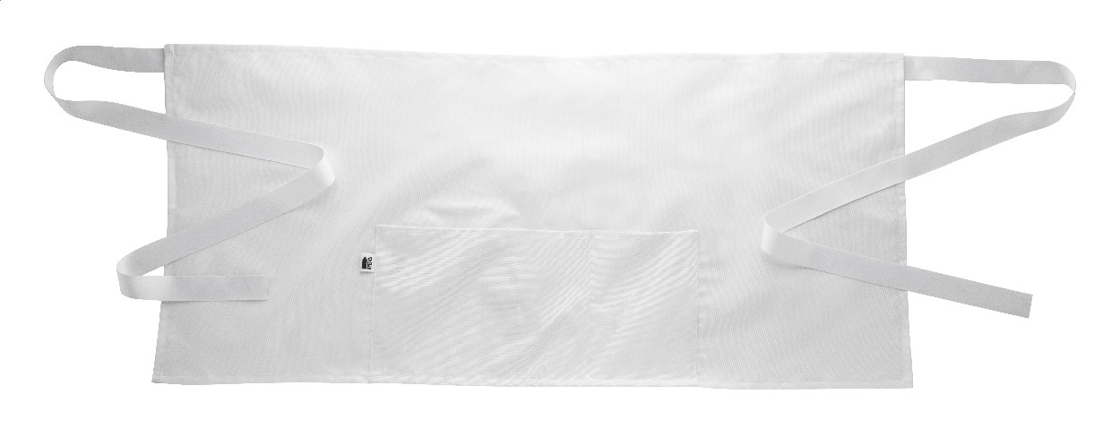 Bistro zástěra z polyesteru RPET 600D na zakázku s trojitou přední kapsou, sublimačním potiskem po celé ploše a výraznou RPET etiketou. Cena nezahrnuje tiskovou přípravu. Min. mn.: 25 ks.