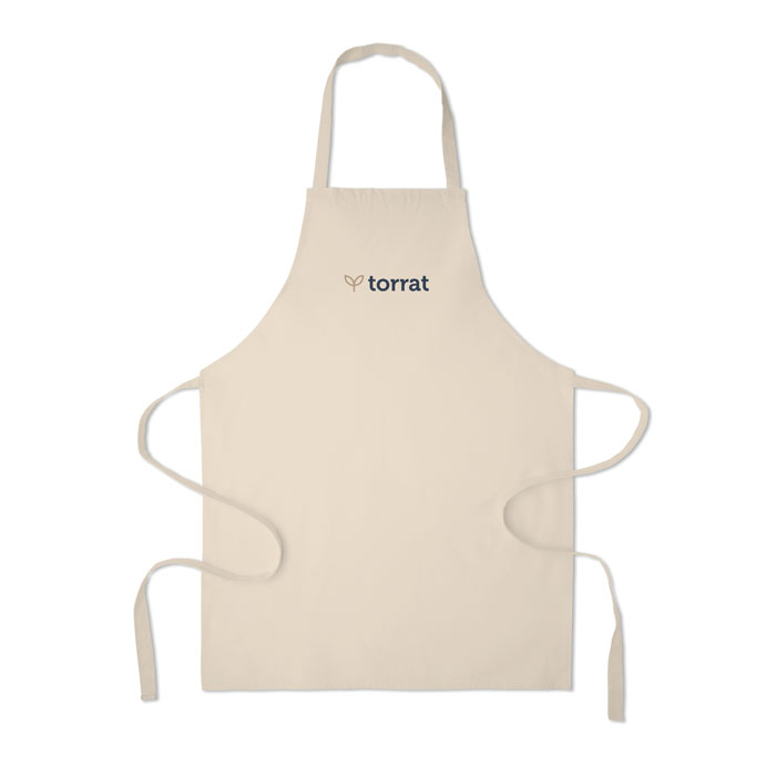 Zástěra z recyklované předspotřební bavlny v gramáži 180g (70 % recyklovaná bavlna a 30 % polyester RPET). Tento produkt se po tisku může srazit.