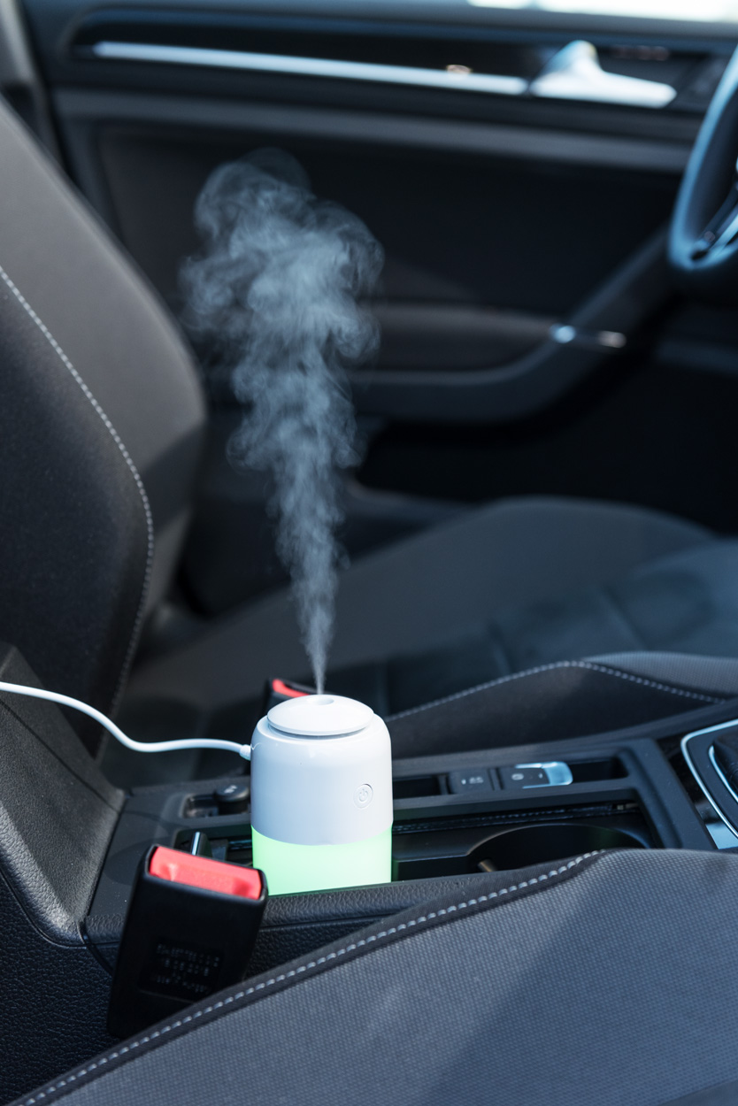 Plastový stolní zvlhčovač vzduchu s vícebarevným LED světlem. Vč. USB kabelu, 200 ml.
