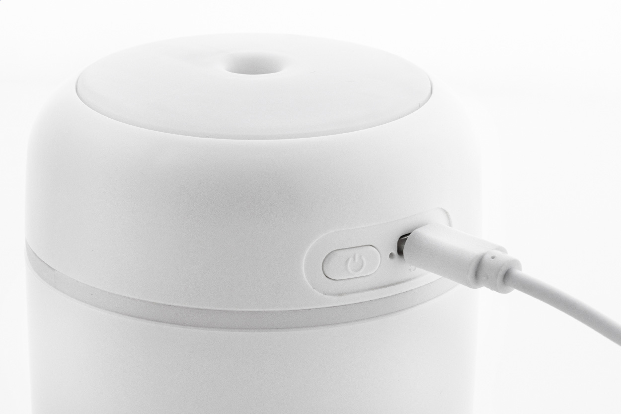 Stolní zvlhčovač vzduchu z recyklovaného ABS materiálu s vícebarevným LED světlem. Včetně USB nabíjecího kabelu. Objem nádržky: 280 ml.