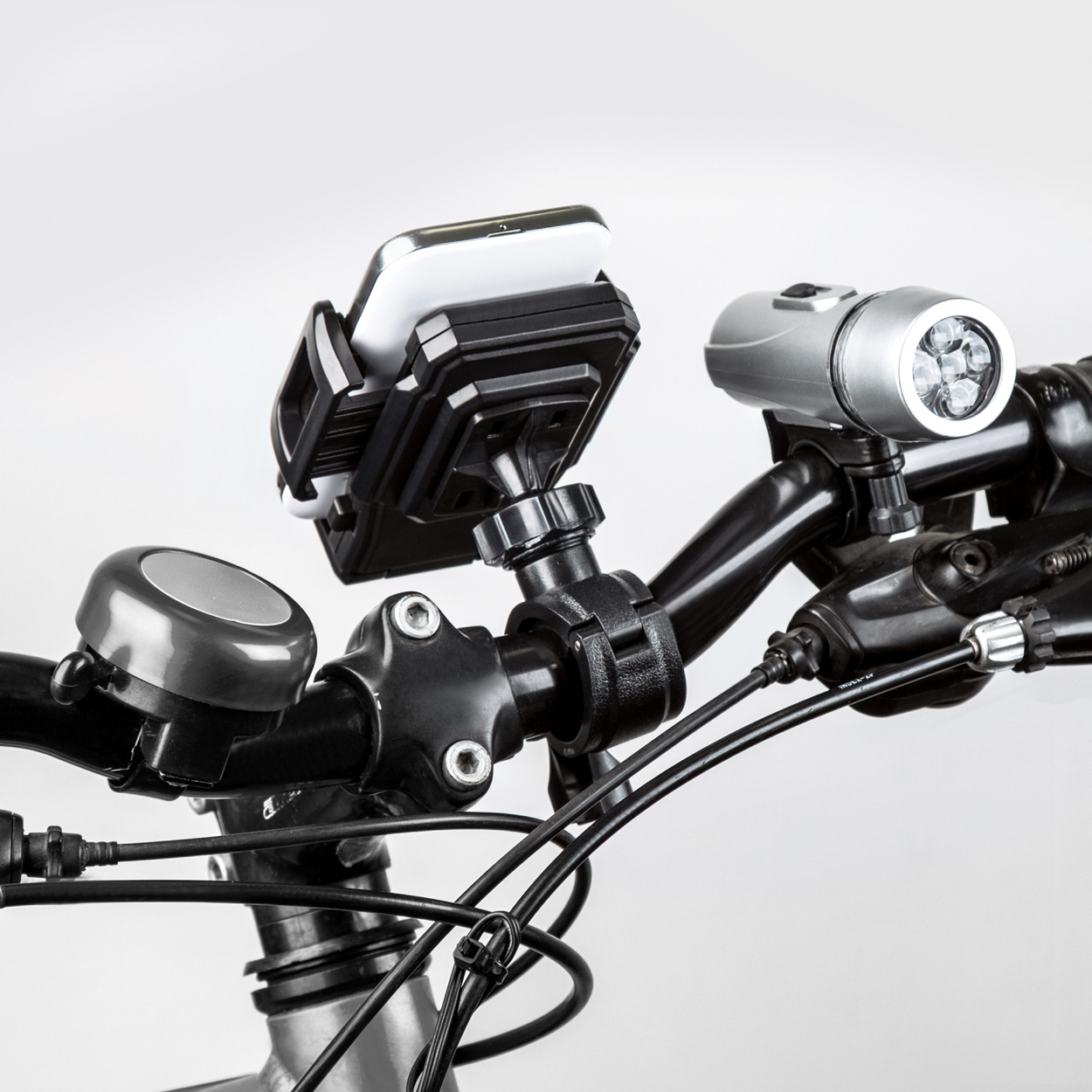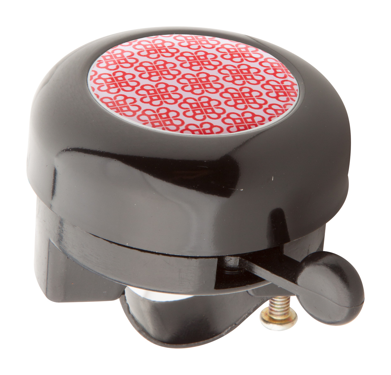 Hliníkový zvonek na kolo se stříbrnou plochou.