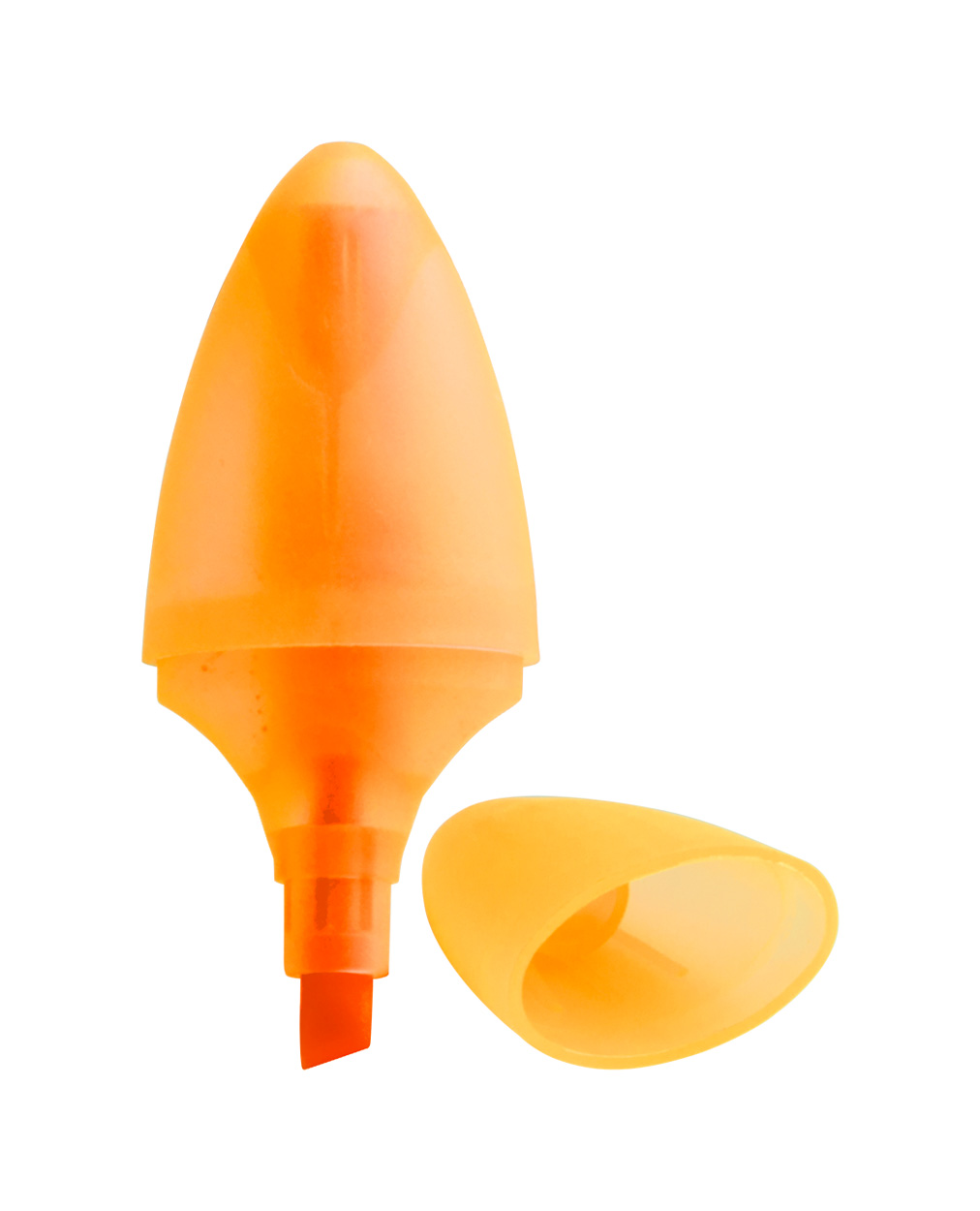 Zvýrazňovač ve tvaru kapsle v průsvitném plastovém obalu.